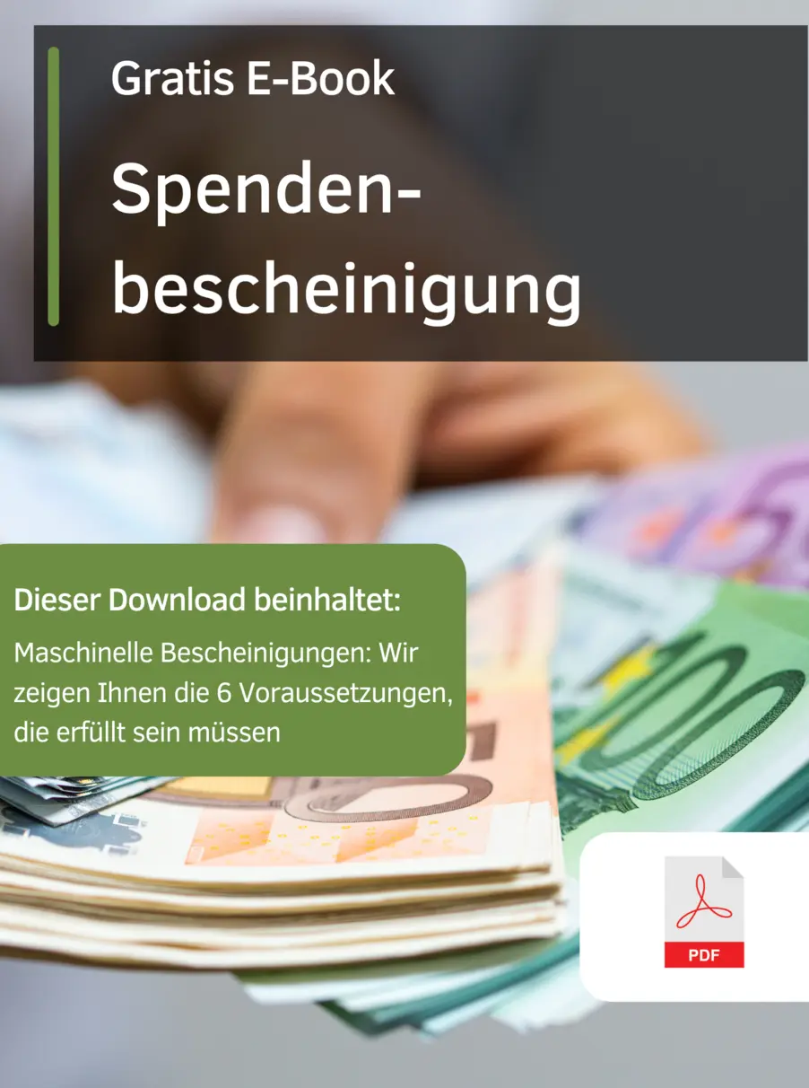 Unser kostenloses E-Book macht Sie schnell und unkompliziert mit den wirklich wichtigen Aspekten zur Spendenbescheinigung vertraut. Diese Anleitungen im E-Book helfen Ihnen sofort weiter.