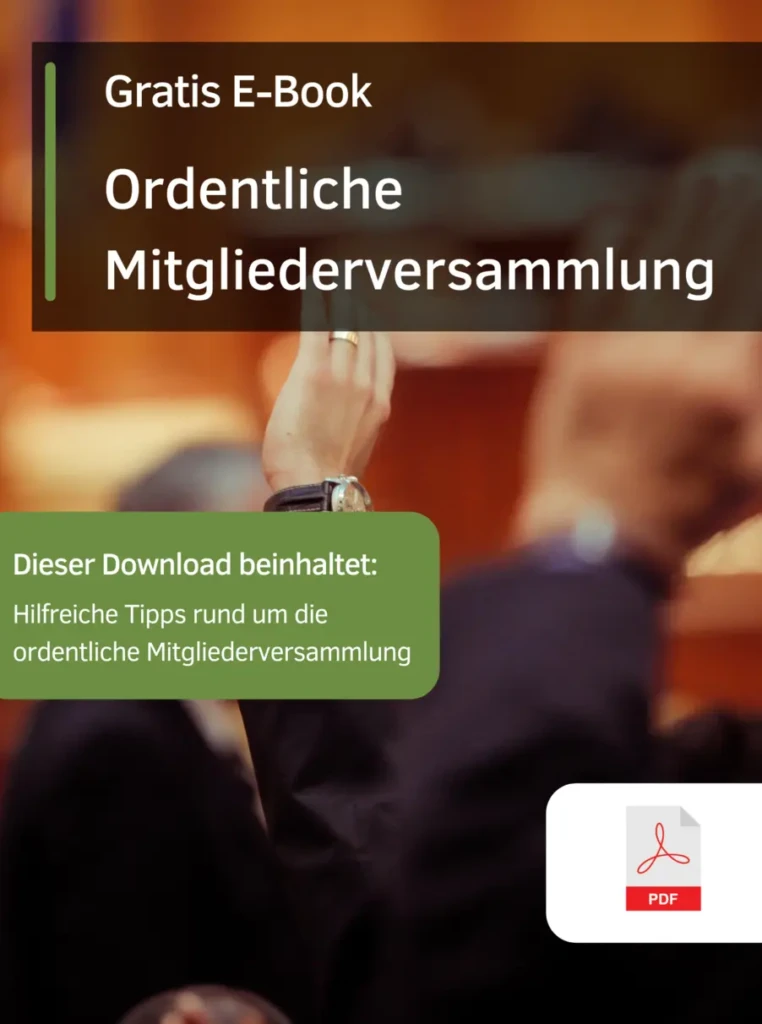 Sie ist regelmäßig das oberste Organ des Vereins: Die ordentliche Mitgliederversammlung. Gesetzlich ist sie sogar vorgeschrieben! Sichern Sie sich jetzt unser kostenloses E-Book.